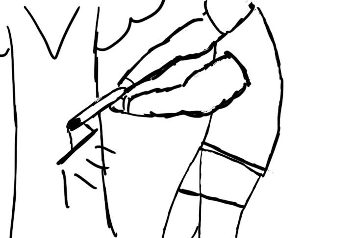 Shot 18: He sits on the floor and puts his head down while leaning on the pole.