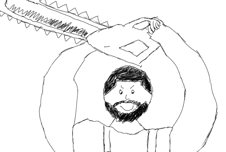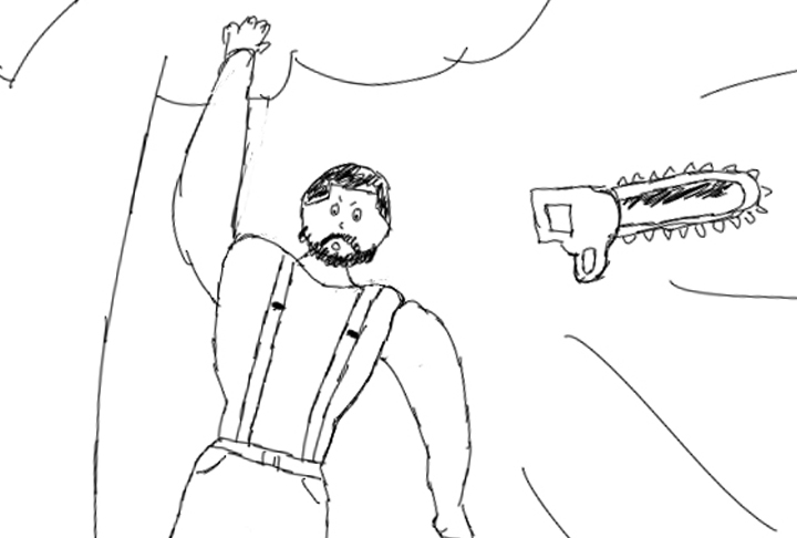 Shot 11: He seems to be confident that this will be able to cut down the tree.