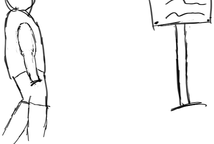 Shot 1: Jack is outside of the forest looking for a good tree.